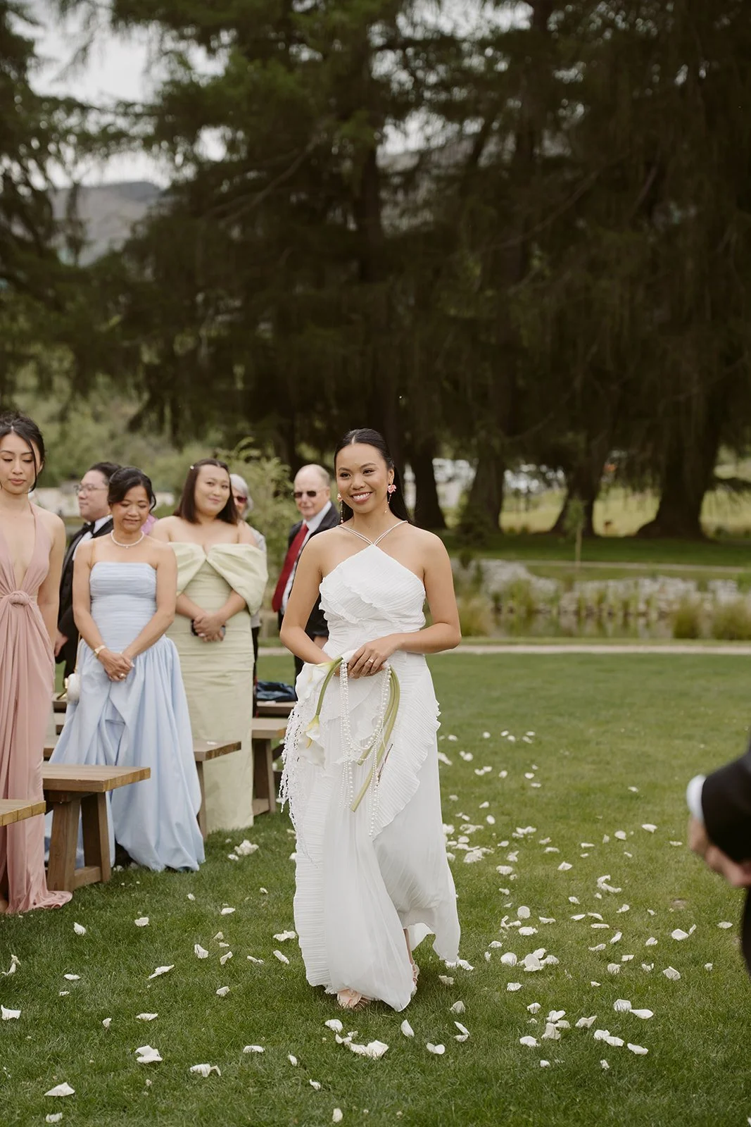 The ceremony took place at The Pond at Ayrburn, one of the most striking wedding ceremony locations in Queenstown.