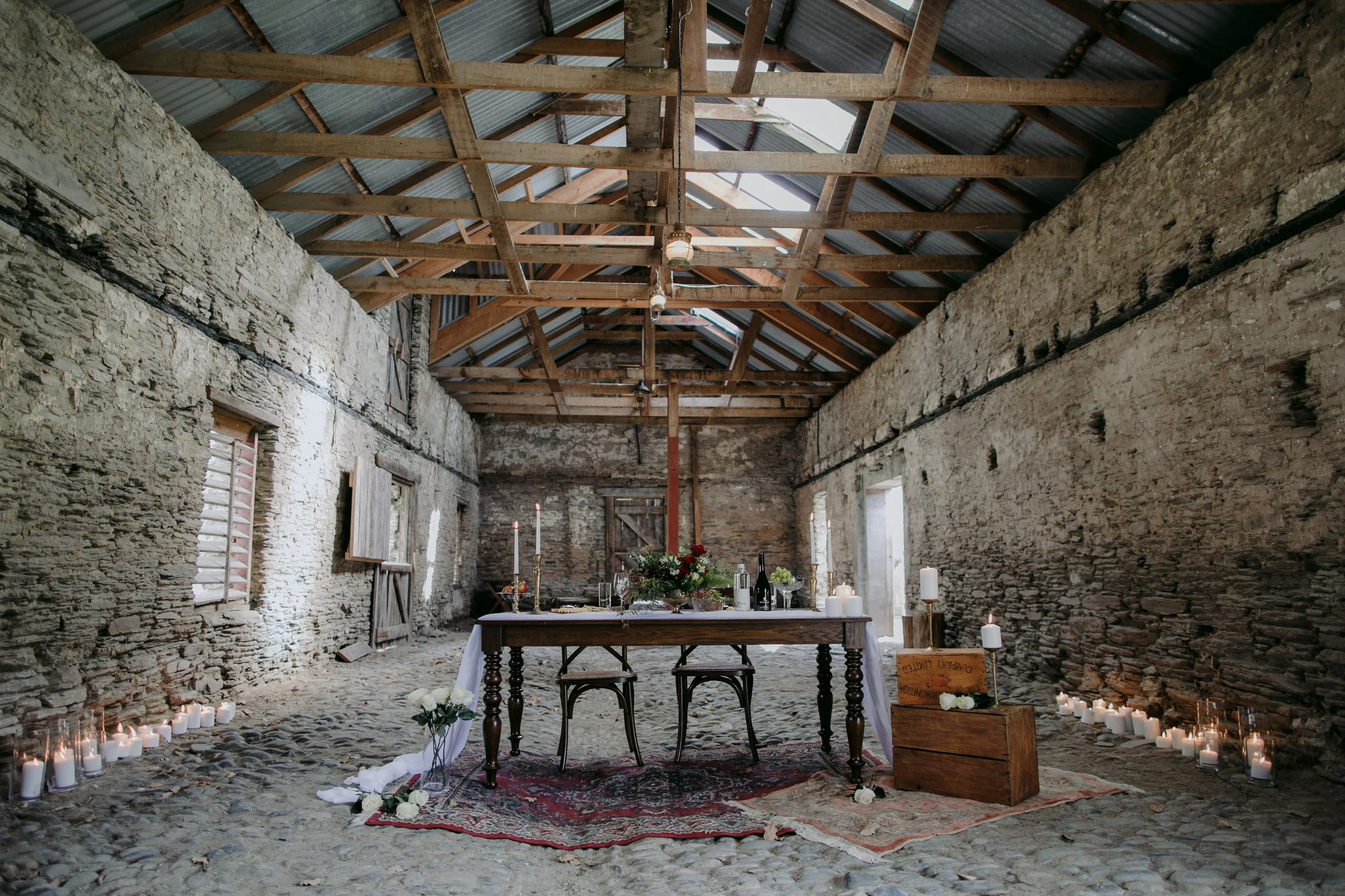 Nestled between Queenstown and Arrowtown along Speargrass Flat Road, Thurlby Domain offers a secluded, enchanting backdrop for couples seeking a venue that feels timeless and genuine. With its heritage stone ruins, restored stables, sweeping park-like grounds, ancient trees, hidden meadows and a gentle stream, the Domain blends romance with raw natural beauty.